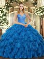 Dazzling Blue Lace Up Quinceanera Gowns Beading and Ruffles Sleeveless Floor Length