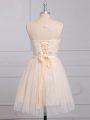Dazzling Champagne Sleeveless Lace Lace Up Bridesmaid Gown for Prom and Party and Wedding Party