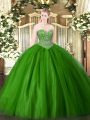 Dazzling Floor Length Ball Gowns Sleeveless Green Quinceanera Gown Lace Up