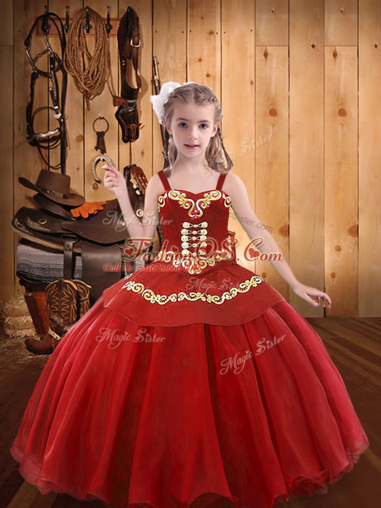 Home >  Special Occasion Dresses >  Lovely Little Girl Pageant Dresses > Dazzling Floor Length Ball Gowns Sleeveless Red Little Girl Pageant Gowns Lace Up