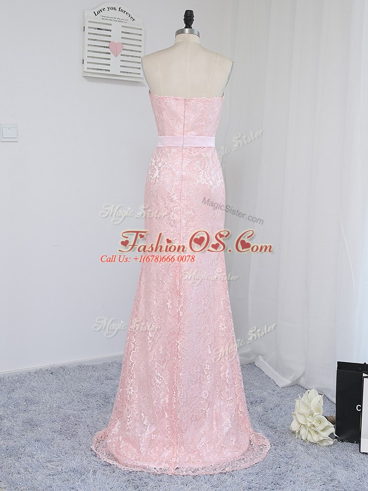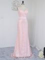 Dazzling Floor Length Column/Sheath Sleeveless Baby Pink Quinceanera Court of Honor Dress Zipper
