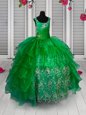 Home >  Special Occasion Dresses >  Little Girl Pageant Dresses > Dazzling Floor Length Green Girls Pageant Dresses Organza Sleeveless Appliques and Ruffled Layers