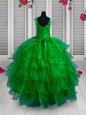 Dazzling Floor Length Green Girls Pageant Dresses Organza Sleeveless Appliques and Ruffled Layers