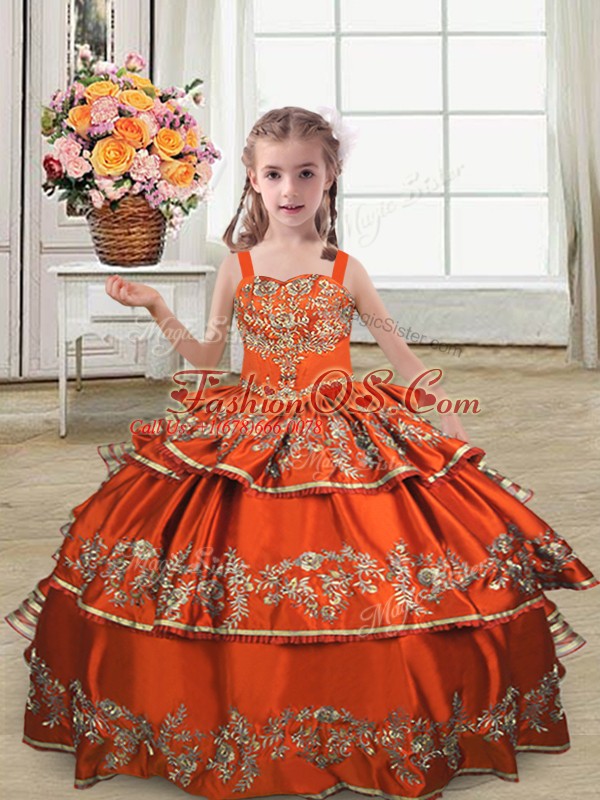 Home >  Special Occasion Dresses >  Lovely Little Girl Pageant Dresses > Dazzling Floor Length Lace Up Child Pageant Dress Rust Red for Wedding Party with Embroidery and Ruffled Layers