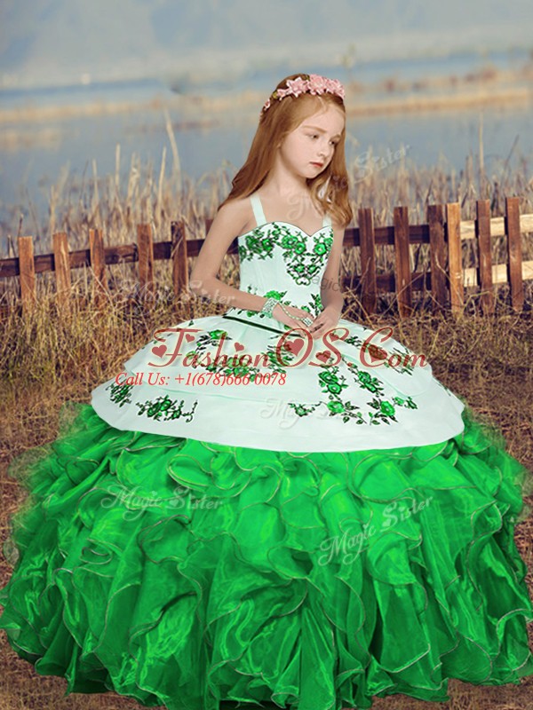 Dazzling Green Ball Gowns Embroidery Kids Formal Wear Lace Up Organza Sleeveless Floor Length