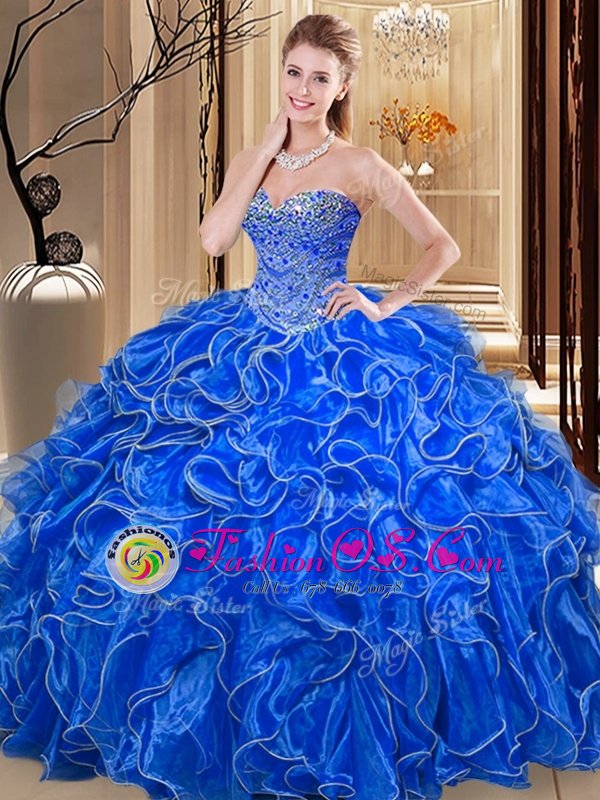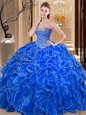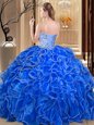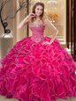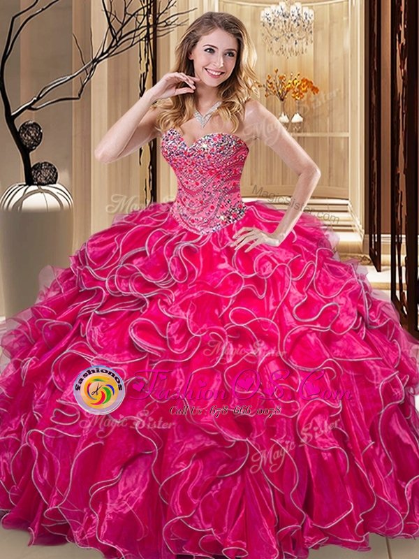 Dazzling Hot Pink Sweet 16 Quinceanera Dress Military Ball and Sweet 16 and Quinceanera and For with Beading and Ruffles Sweetheart Sleeveless Lace Up