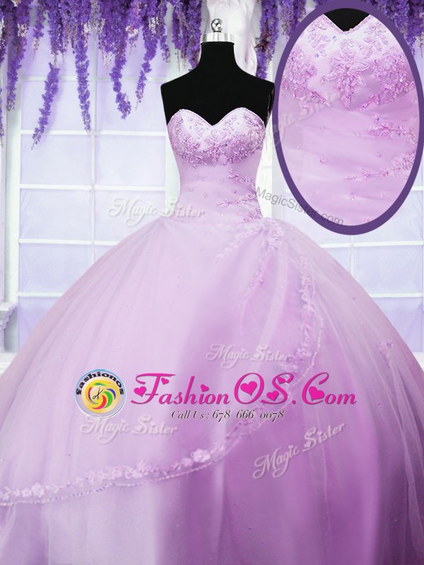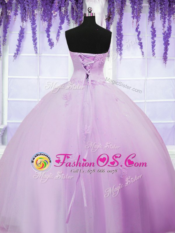 Dazzling Lilac Lace Up Sweet 16 Dresses Appliques Sleeveless Floor Length