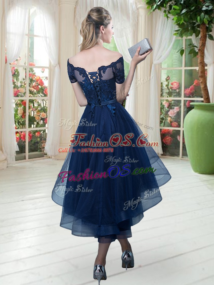 Dazzling Off The Shoulder Short Sleeves Tulle Party Dress for Girls Lace Lace Up