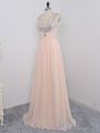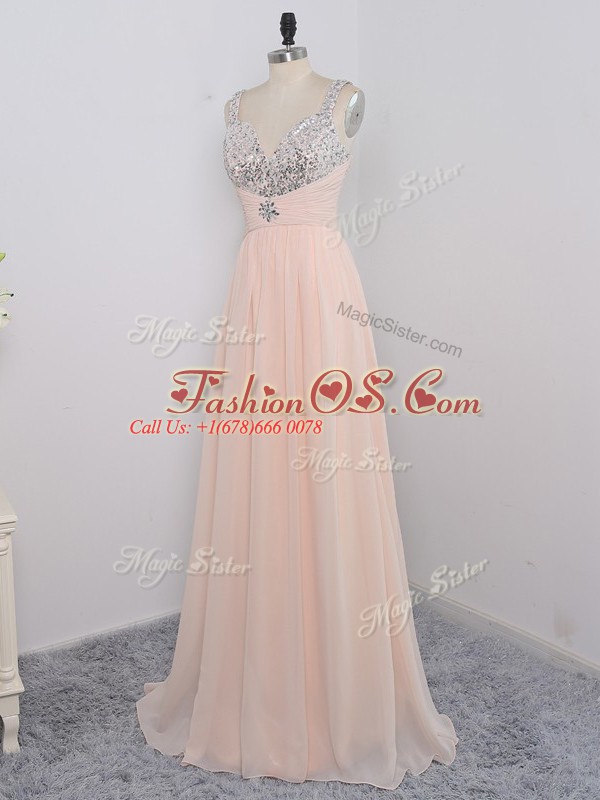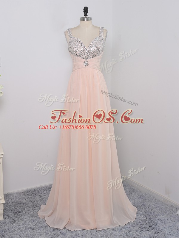 Dazzling Peach Empire Straps Sleeveless Chiffon Floor Length Zipper Sequins Custom Made