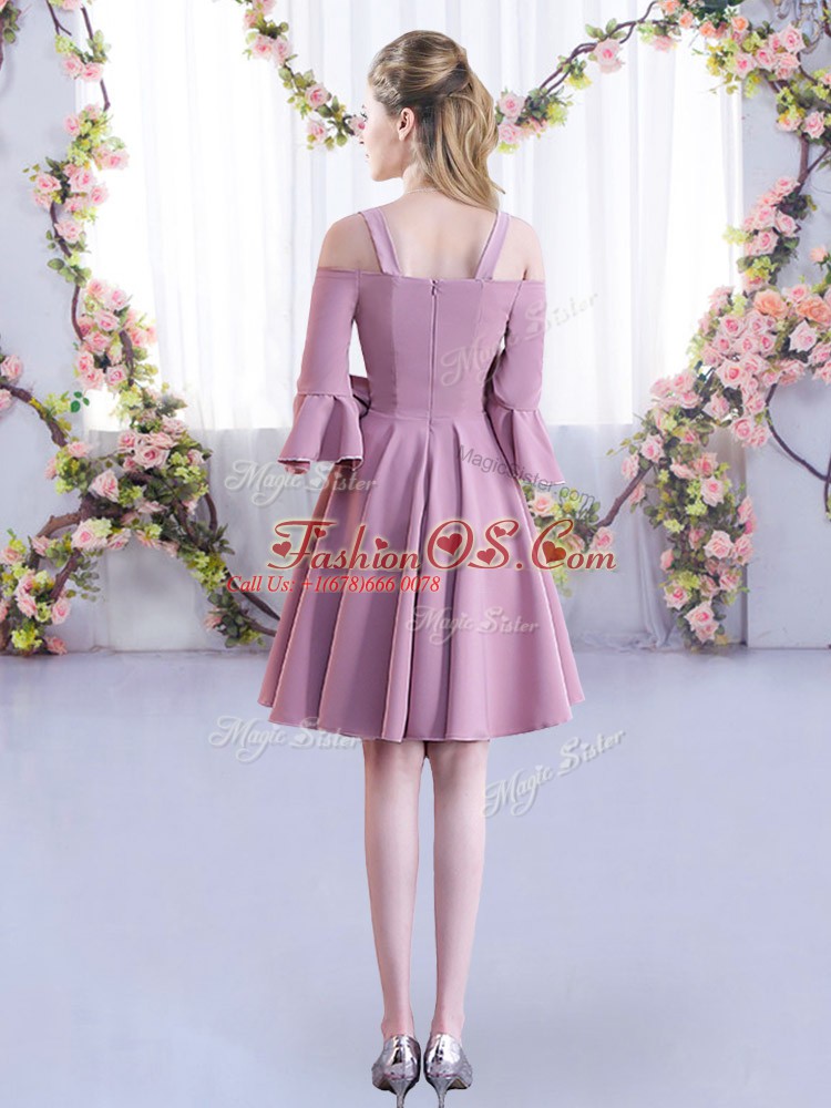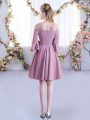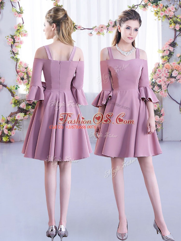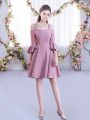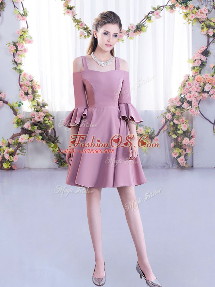 Dazzling Pink A-line Ruching Wedding Party Dress Zipper Chiffon Half Sleeves Mini Length