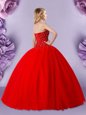 Dazzling Red Ball Gowns Tulle Sweetheart Sleeveless Beading Floor Length Lace Up Sweet 16 Quinceanera Dress