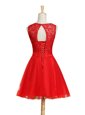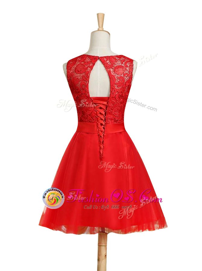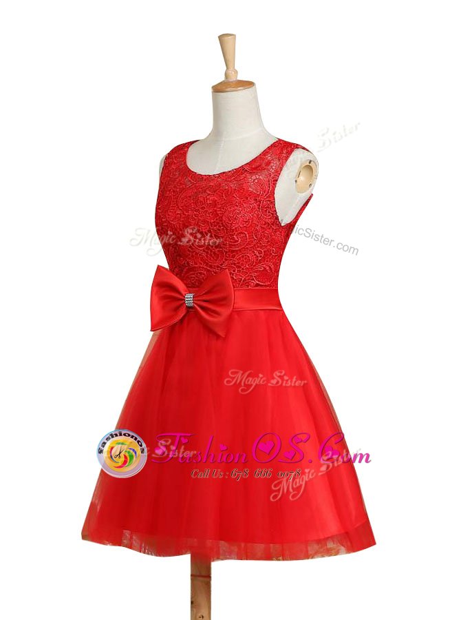 Dazzling Red Scoop Lace Up Lace and Bowknot Cocktail Dresses Sleeveless