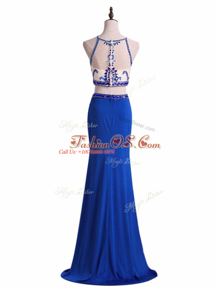 Home >  Prom Dresses >  Fashionable Prom Dresses > Dazzling Royal Blue Sleeveless Floor Length Beading Zipper Homecoming Dress