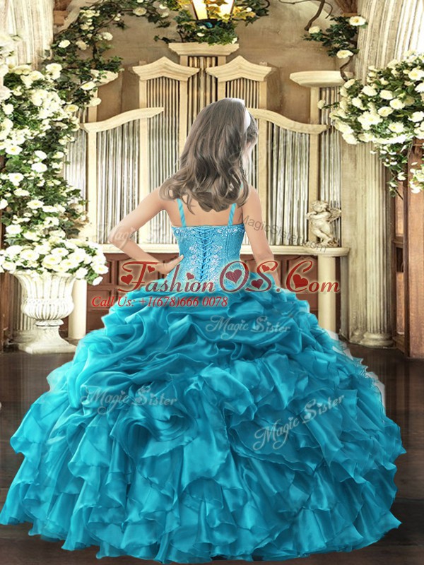 Home >  Special Occasion Dresses >  Beautiful Kids Pageant Dresses > Dazzling Rust Red Organza Lace Up Glitz Pageant Dress Sleeveless Floor Length Appliques and Ruffles