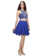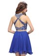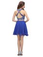 Home >  Prom Dresses >  Cheap Prom Dresses > Dazzling Scoop Knee Length Criss Cross Prom Dresses Royal Blue and In for Prom and Party with Beading