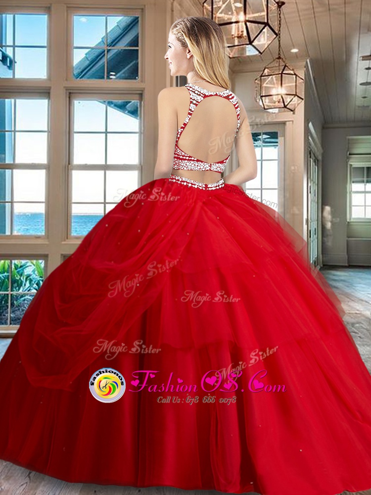 Dazzling Scoop Sleeveless Beading and Pick Ups Backless 15th Birthday Dress