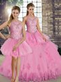 Dazzling Scoop Sleeveless Tulle Quinceanera Dress Lace and Embroidery and Ruffles Lace Up