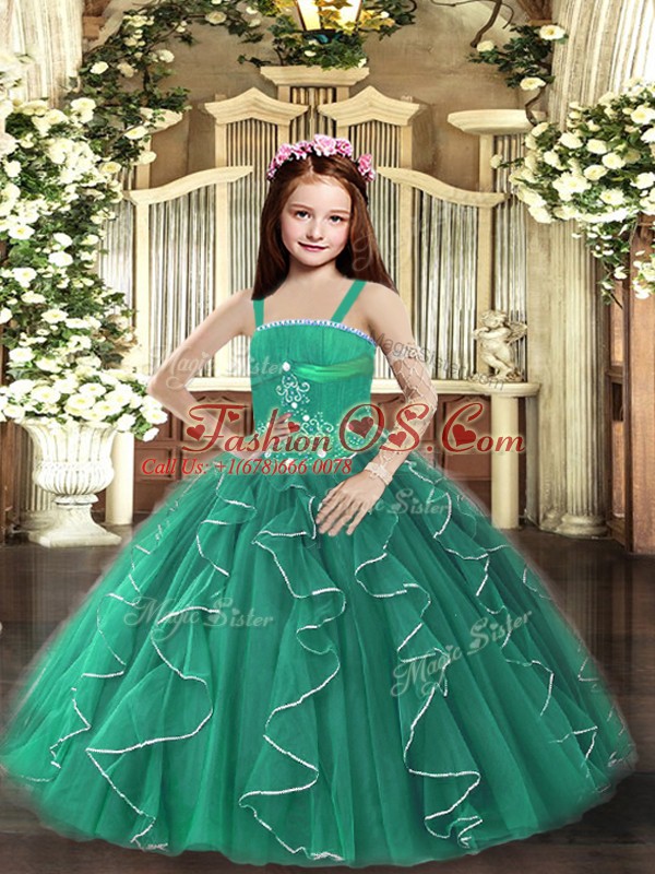 Dazzling Sleeveless Lace Up Floor Length Beading and Ruffles Kids Formal Wear