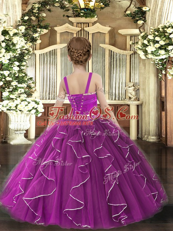 Home >  Special Occasion Dresses >  Lovely Little Girl Pageant Dresses > Dazzling Sleeveless Lace Up Floor Length Beading and Ruffles Kids Formal Wear