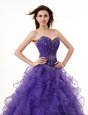 Home >  Quinceanera Dresses >  Discount Quinceanera Dresses > Dazzling Sleeveless Organza Floor Length Lace Up 15 Quinceanera Dress in Purple for with Beading and Ruffles