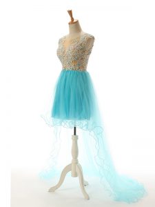 Home >  Prom Dresses >  Discount Prom Dresses > Decent A-line Homecoming Dress Aqua Blue Scoop Tulle Sleeveless High Low Backless