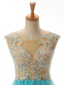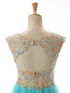Decent A-line Homecoming Dress Aqua Blue Scoop Tulle Sleeveless High Low Backless