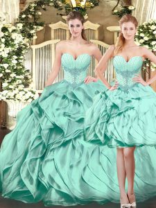Decent Apple Green Sleeveless Floor Length Beading and Ruffles Lace Up Quinceanera Dress