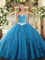 Home >  Quinceanera Dresses >  Cute Quinceanera Dresses > Decent Baby Blue Ball Gowns Sweetheart Sleeveless Tulle Brush Train Lace Up Appliques 15 Quinceanera Dress