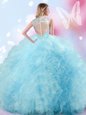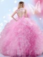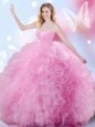 Decent Beading and Ruffles and Pick Ups Quinceanera Dresses Rose Pink Zipper Sleeveless Floor Length