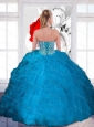 Decent Beading and Ruffles Sweetheart Teal Sweet 16 Dresses for 2015