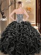 Decent Black Ball Gowns Organza Sweetheart Sleeveless Ruffles and Pattern Floor Length Lace Up Sweet 16 Dresses