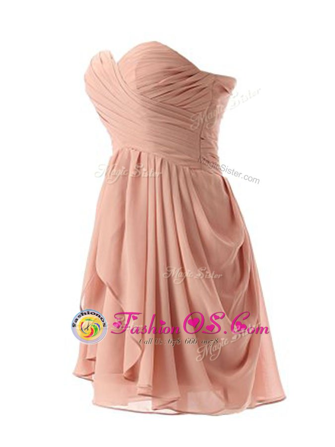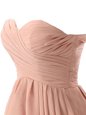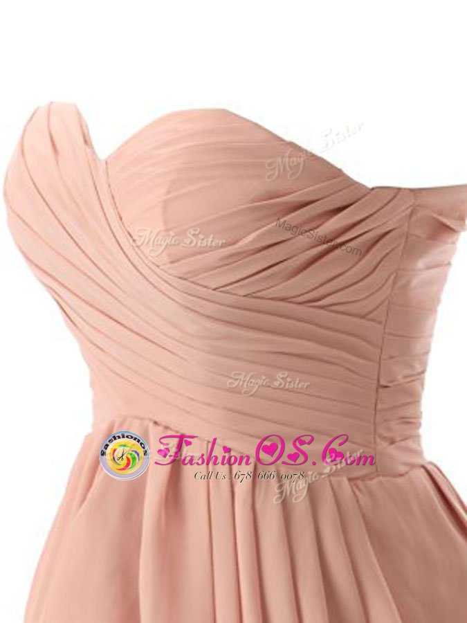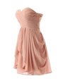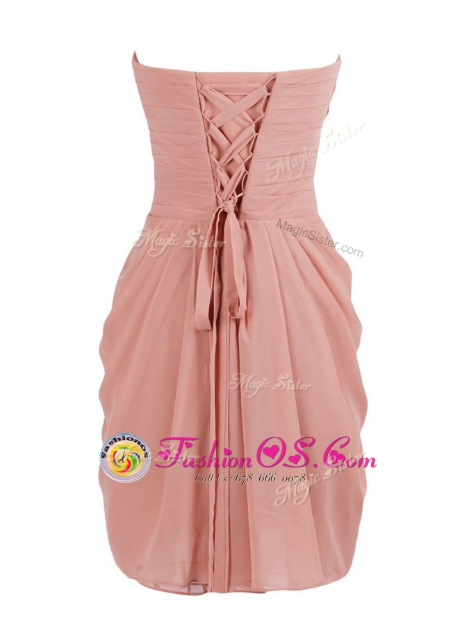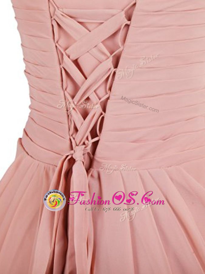 Decent Chiffon Sweetheart Sleeveless Lace Up Ruching Prom Party Dress in Pink