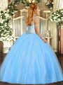 Decent Floor Length Ball Gowns Sleeveless Lilac Quinceanera Gowns Lace Up