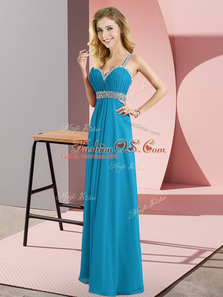 Home >  Special Occasion Dresses >  Homecoming Dresses > Decent Floor Length Empire Sleeveless Blue Homecoming Dresses Criss Cross