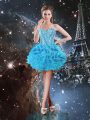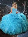 Decent Floor Length Lace Up Quinceanera Dresses Aqua Blue for Military Ball and Sweet 16 and Quinceanera with Beading and Ruffles