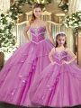 Decent Floor Length Lace Up Sweet 16 Dress Lilac for Sweet 16 and Quinceanera with Beading