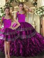Decent Fuchsia Lace Up Sweet 16 Dresses Embroidery and Ruffles Sleeveless Floor Length