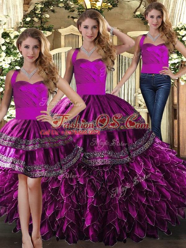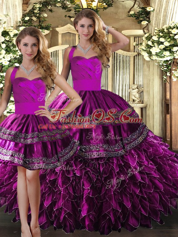 Home >  Quinceanera Dresses >  Detachable Quinceanera Skirts > Decent Fuchsia Lace Up Sweet 16 Dresses Embroidery and Ruffles Sleeveless Floor Length