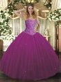 Decent Fuchsia Sleeveless Beading Floor Length 15th Birthday Dress