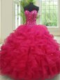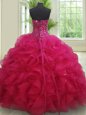 Decent Fuchsia Sweetheart Neckline Beading and Ruffles Quinceanera Dresses Sleeveless Lace Up