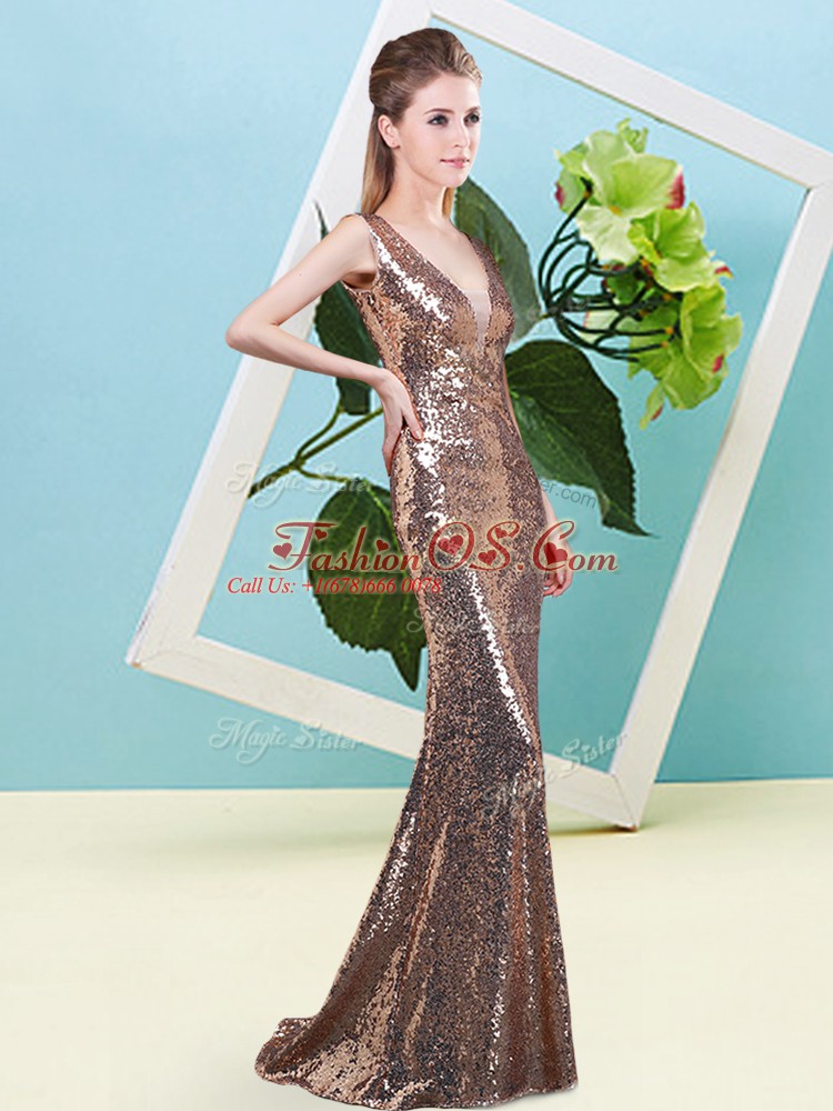 Decent Gold Sleeveless Floor Length Sequins Zipper Evening Dress