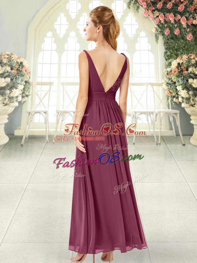 Decent Green Empire V-neck Sleeveless Chiffon Ankle Length Backless Ruching Evening Dress