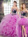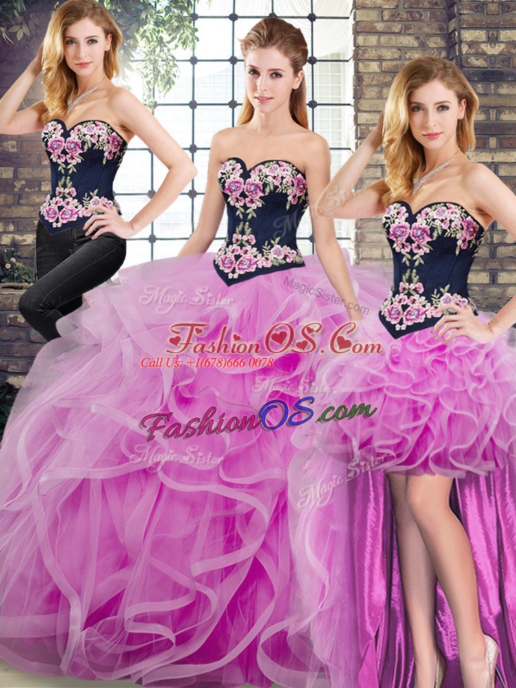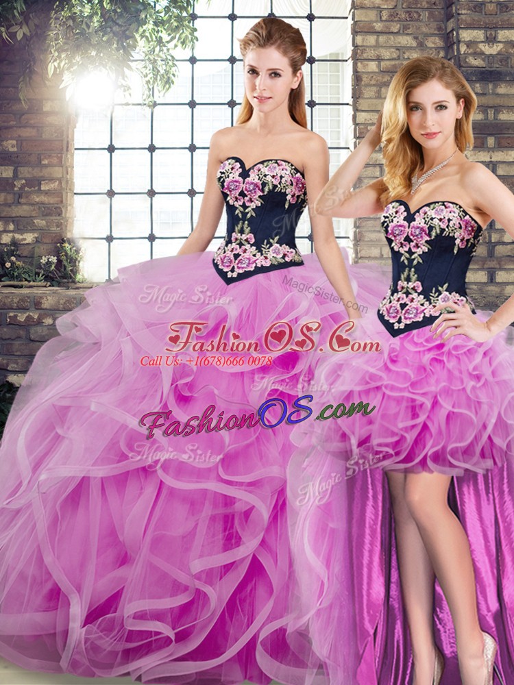 Home >  Quinceanera Dresses >  Removable Skirt Quinceanera Dresses > Decent Lilac Sleeveless Sweep Train Embroidery and Ruffles Quinceanera Dresses