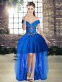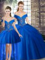 Decent Off The Shoulder Sleeveless 15 Quinceanera Dress Brush Train Beading and Pick Ups Royal Blue Tulle