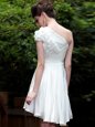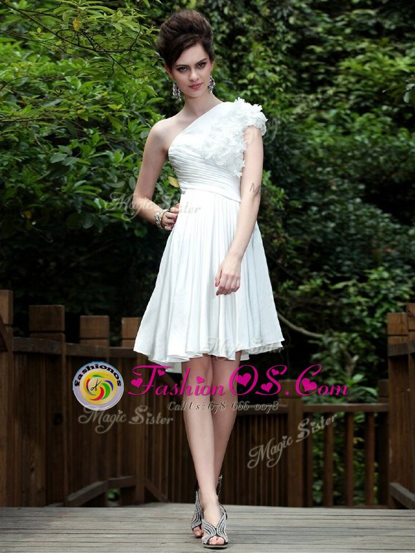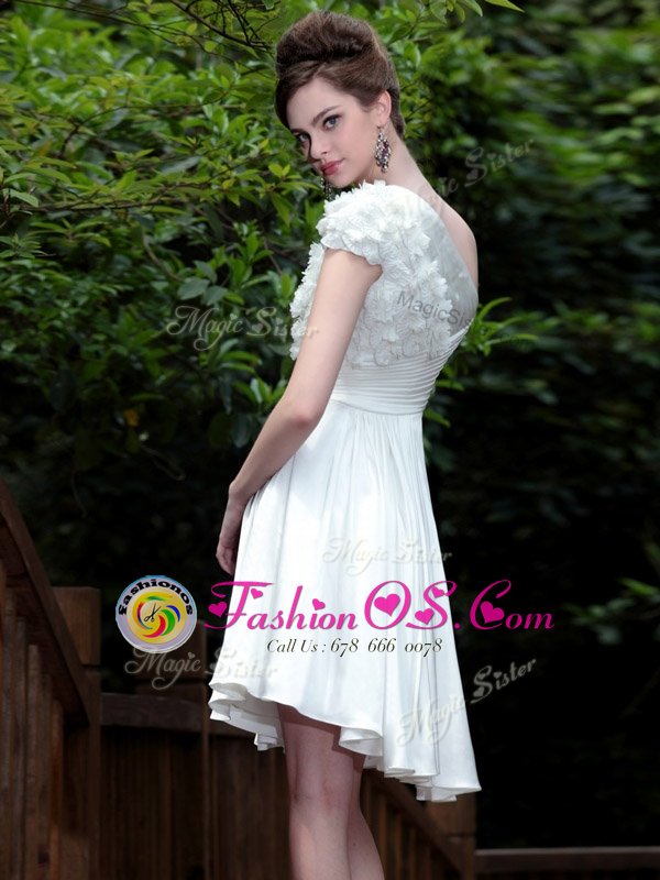 Home >  Prom Dresses >  Perfect Prom Dresses > Decent One Shoulder White Sleeveless Chiffon Zipper Prom Dresses for Prom and Party