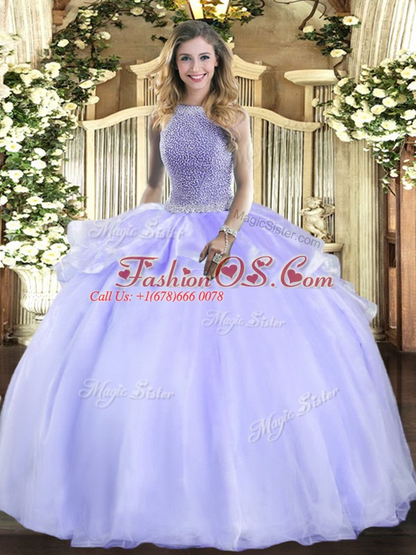 Decent Organza Sleeveless Floor Length 15 Quinceanera Dress and Beading