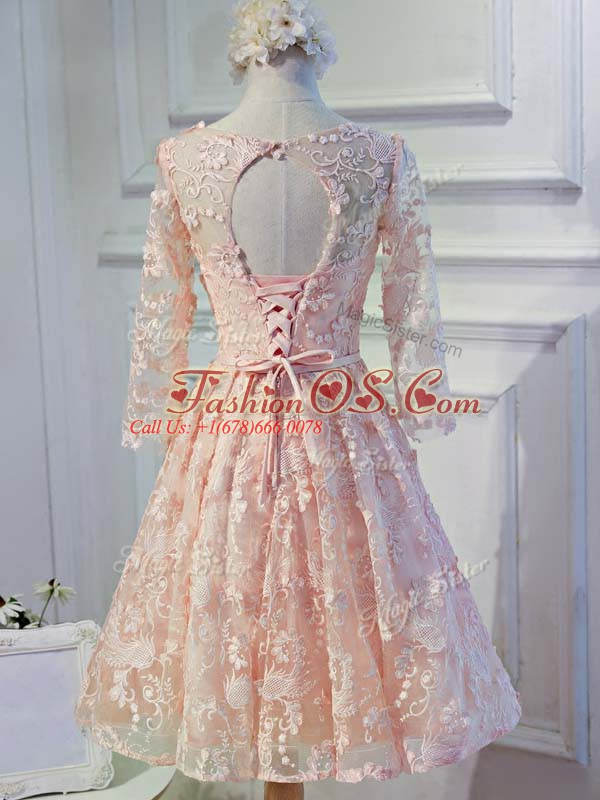 Decent Peach Long Sleeves Appliques Knee Length Dress for Prom
