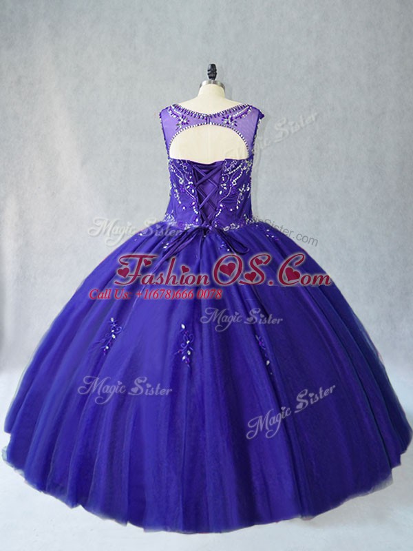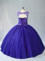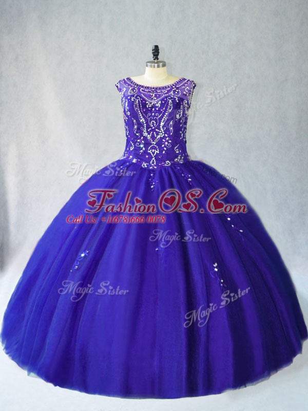 Decent Royal Blue Sleeveless Beading Floor Length Vestidos de Quinceanera