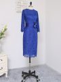 Home >  Special Occasion Dresses >  Elegant Mother of the Bride Dresses > Decent Scoop Long Sleeves Zipper Mother Of The Bride Dress Royal Blue Lace