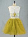 Decent Scoop Sleeveless Zipper Prom Gown Olive Green Organza